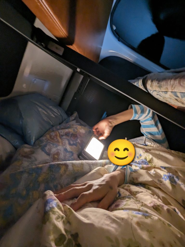 結果、子供二人と私で川の字にベットキットで寝てみました!