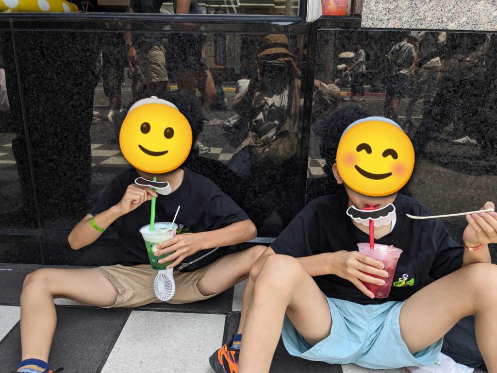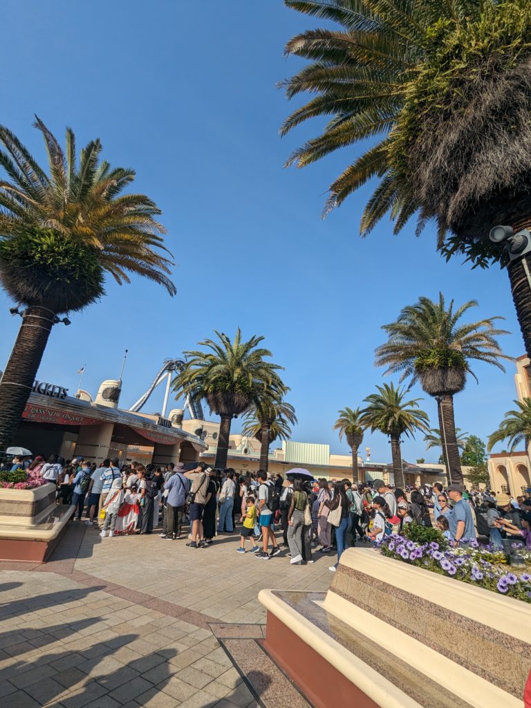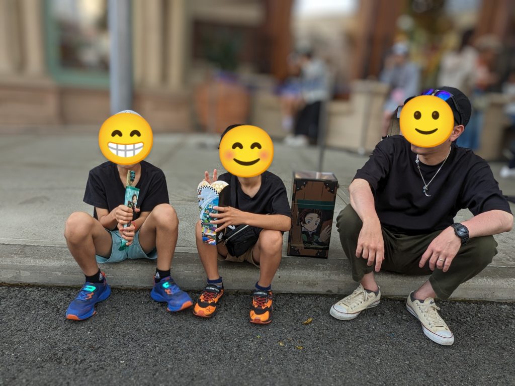前回は、無駄な時間がないように行く場所を決めて動いてたけど、今回はマリオとミニオンは行かないと決めてて、鬼滅の刃とハリーポッターは絶対行くらしく、コジカドットフォーは絶叫系のジェットコースターにシングルでも乗れたら乗る勢い!