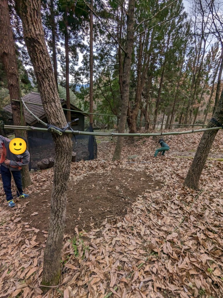 とりあえず、その辺にある竹を切って、枠をつくろうかね。