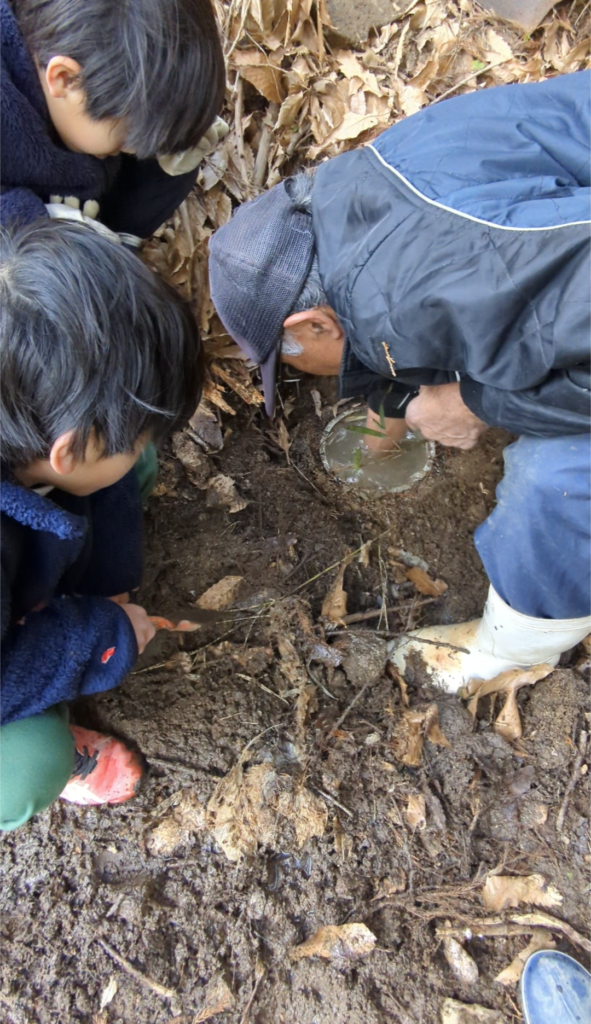 子供達一生懸命泥をどかしてます。