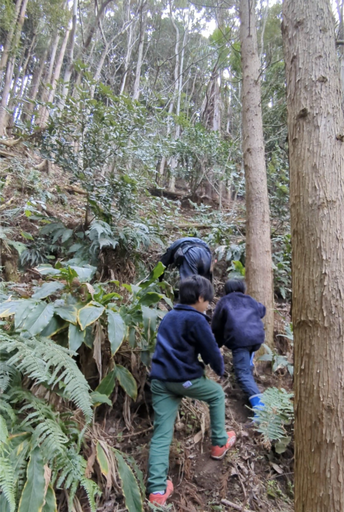 父と子供達と山の上の方に登って確認。