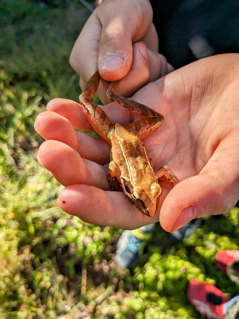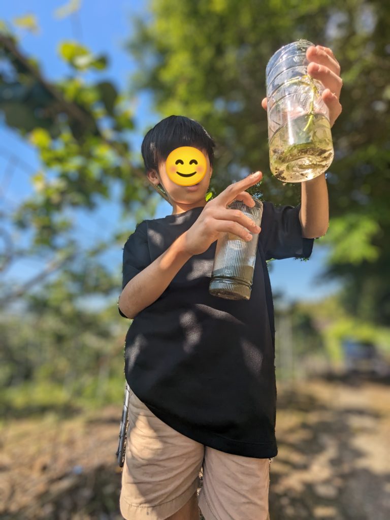 長男は虫類が大好きなので、父が作った池でヤゴを見つけるのにはまったり、カナヘビ捕まえたり、カエルが結構いるのでカエルを捕まえて、「種類はなんだ?メスかオスか?」