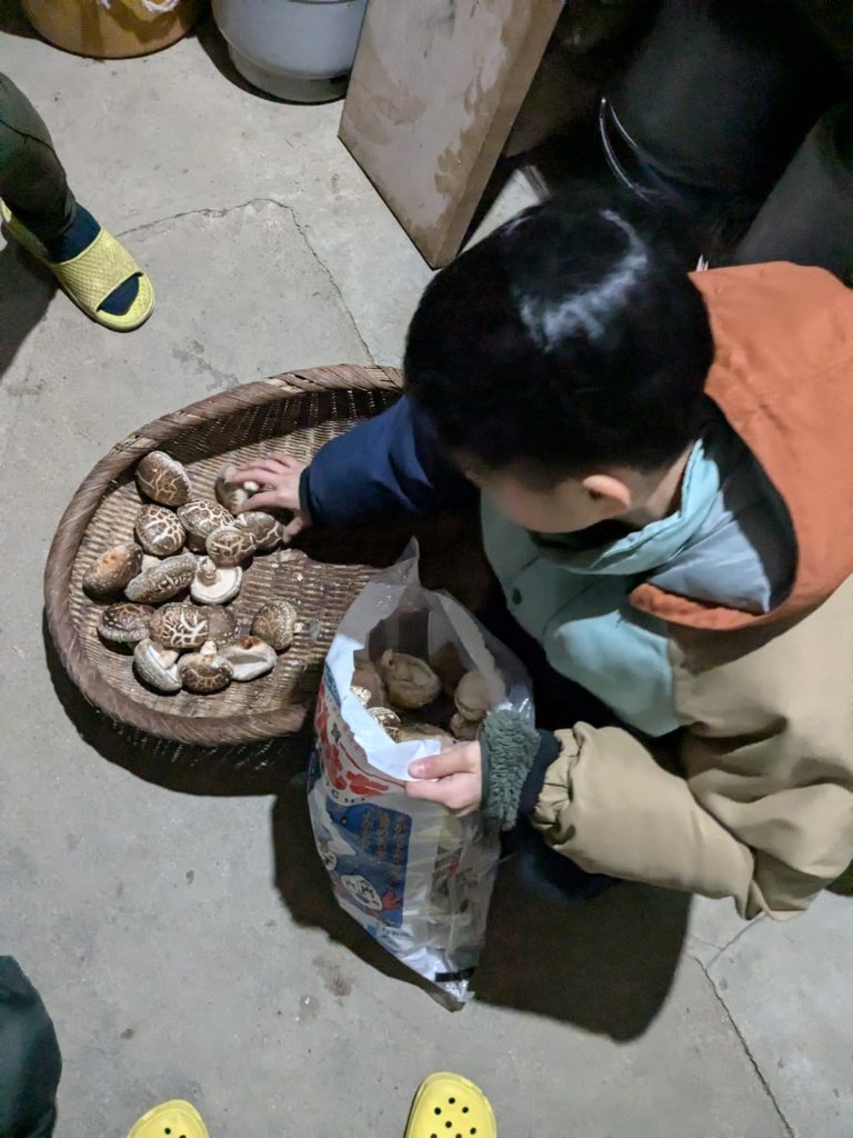 夕方、暗い中に山に登って子供達と原木しいたけを取りに行ってきたよ!